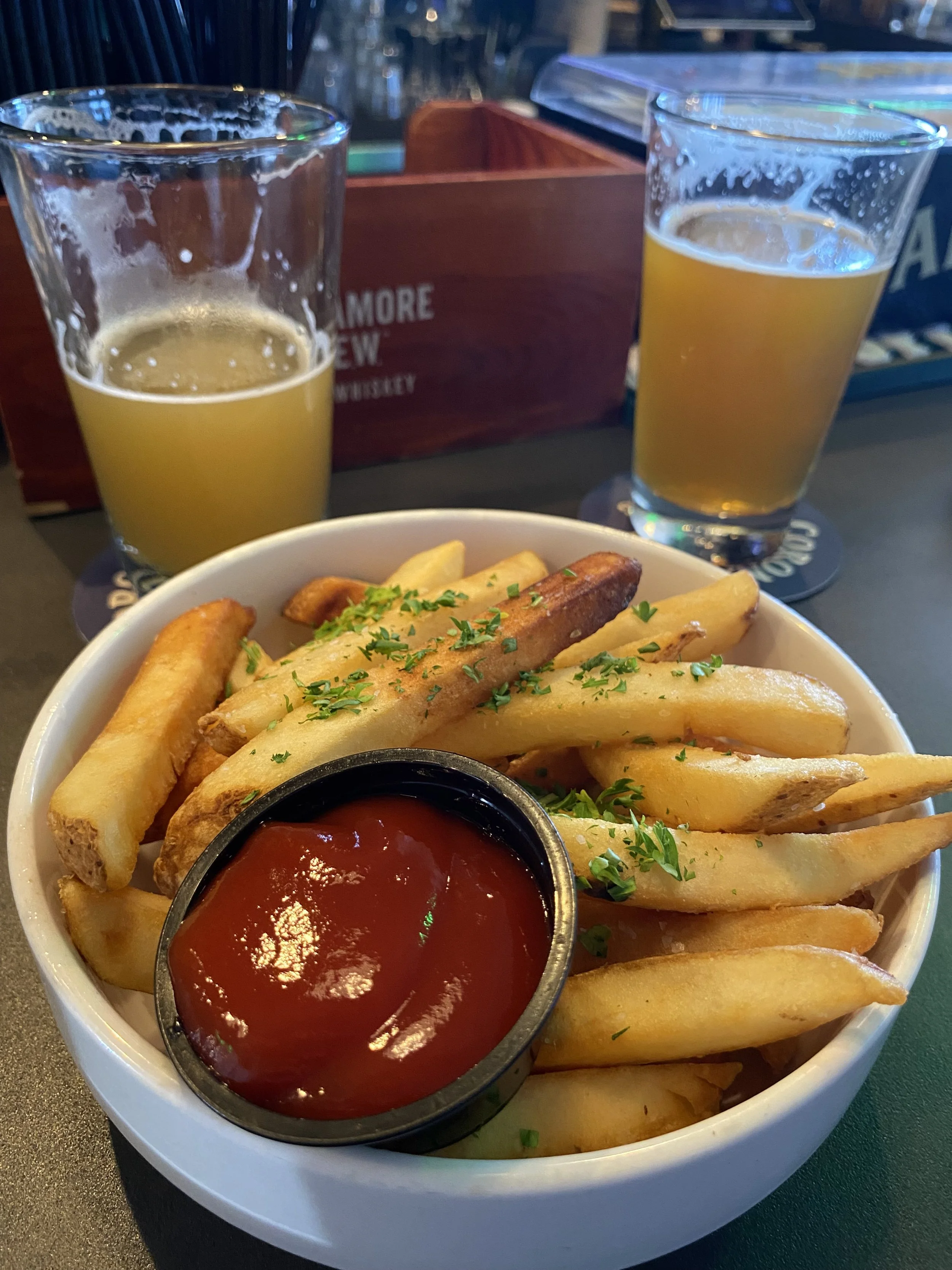 We love this local pub. We have hit up this place after a long run in need of double carbs: We order a nice Irish Blonde and the hot, steaming fries for a nice intro in the evening.